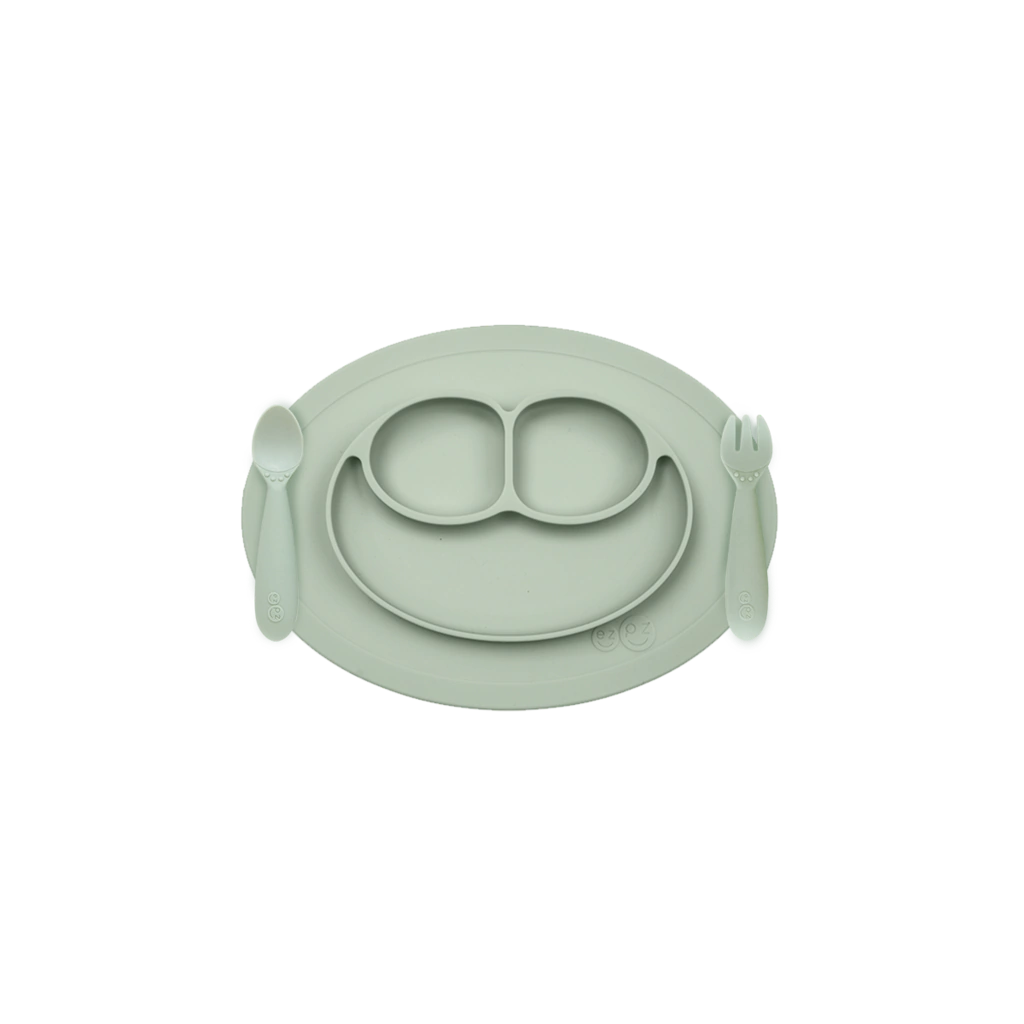 Es un mantel individual + plato de tres divisiones, ideal para fomentar en tus hijos